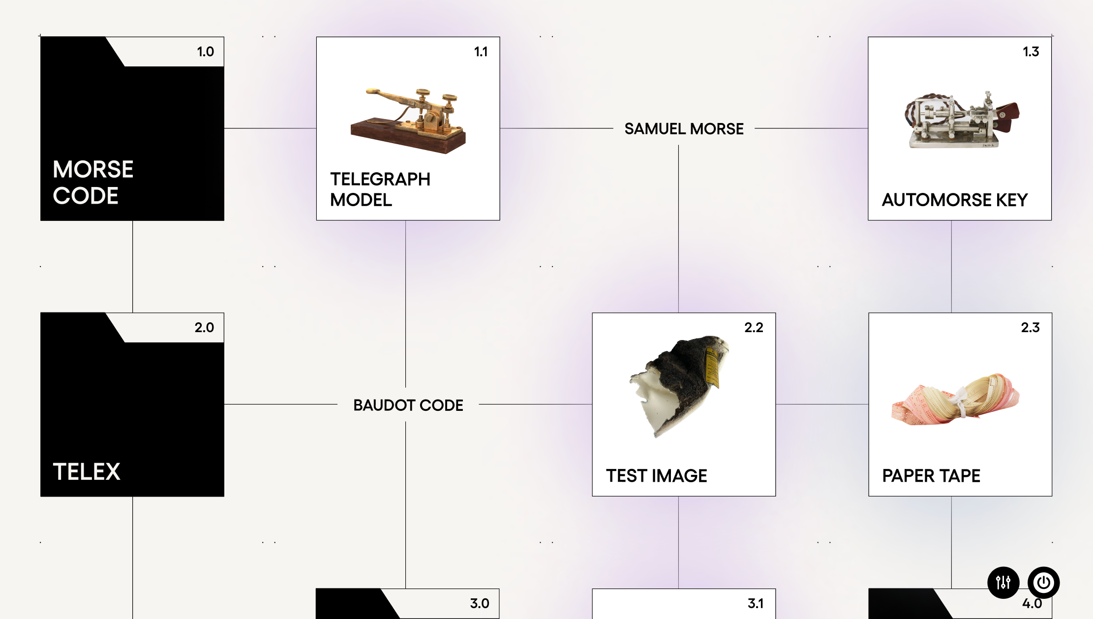 Working with designer Mel Huang, we integrated touchscreens with large viewing monitors directly into the museum's exhibit furniture. The displays use a chat-based interface that lets visitors explore multiple narrative pathways, revealing connections between communications artifacts and their hidden histories.