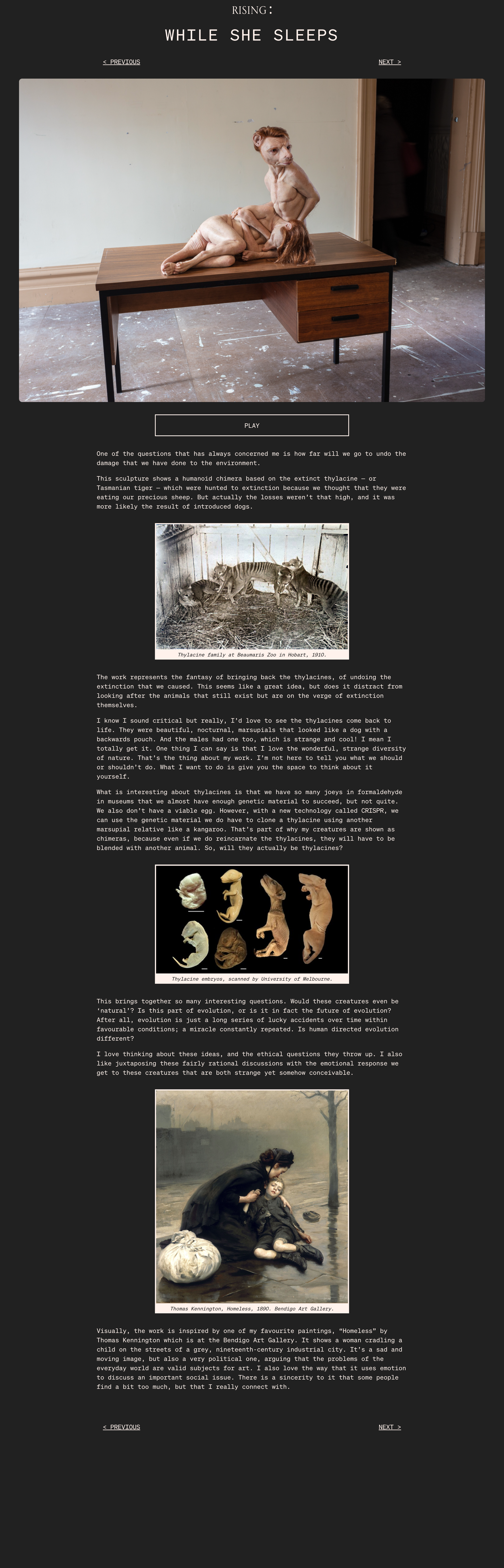 We collaborated with acclaimed artist Patricia Piccinini in the creation of an immersive audioguide platform for her exhibition "A Miracle Constantly Repeated" that ran from June, 2021 to June 2022.